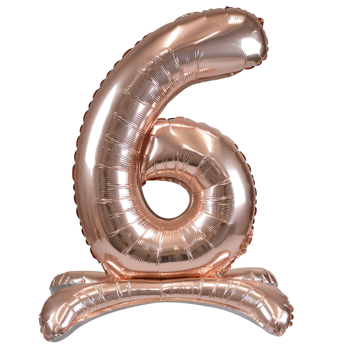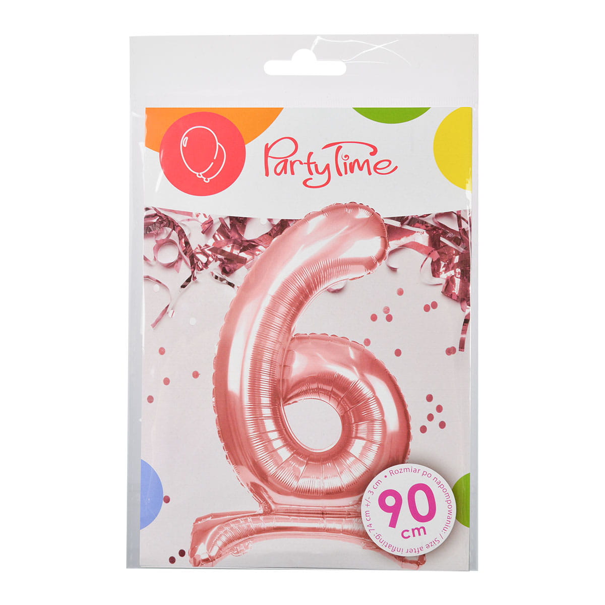 Balon foliowy w kształcie cyferki "6"w modnym kolorze różowozłotym. Koniec z wiązaniem balonów u sufitu! Balon ma szeroką podstawę, dzięki której stabilnie stoi. Wystarczy nadmuchać go powietrzem przy użyciu słomki dołączonej do opakowania. Balon posiada samozaciskający się wentyl – nie trzeba go dodatkowo wiązać. Wysokość balonu to ok. 90 cm. W opakowaniu znajduje się 1 sztuka.