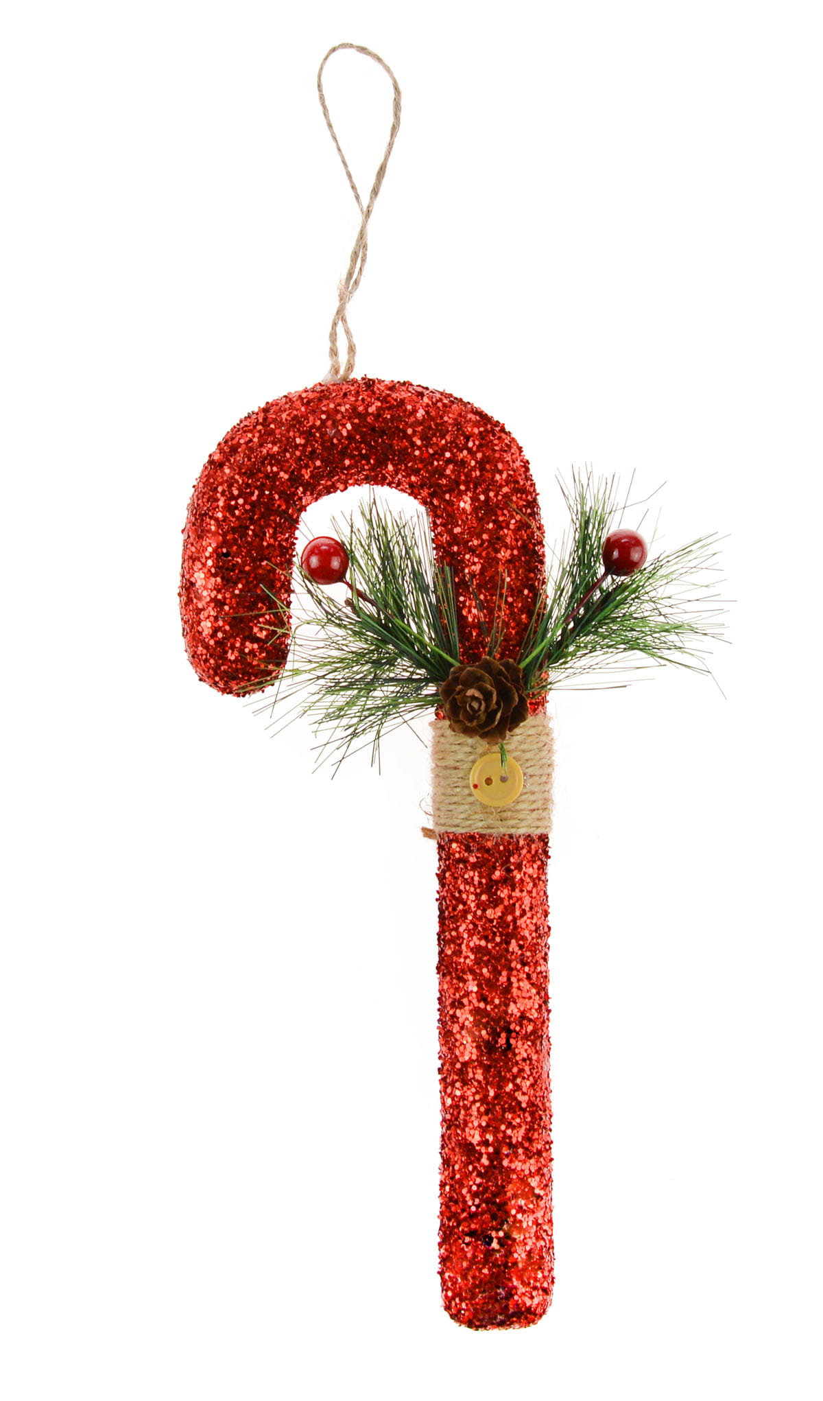 Brokatowa laska choinkowa. Mix wzorów. 1 sztuka. Wysokość: 20 cm.