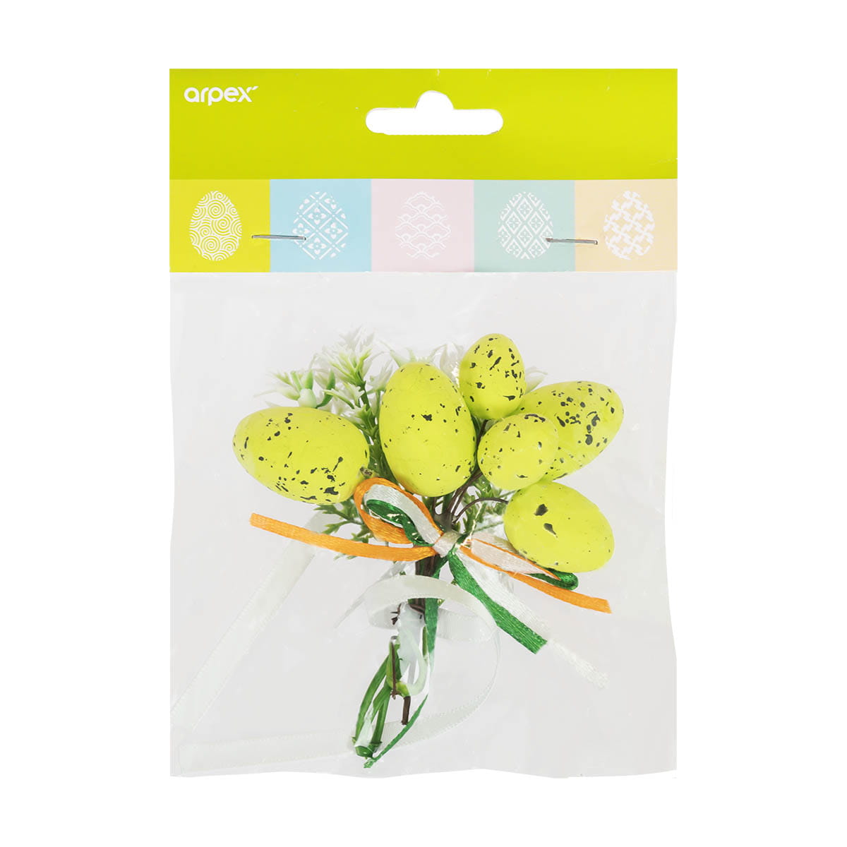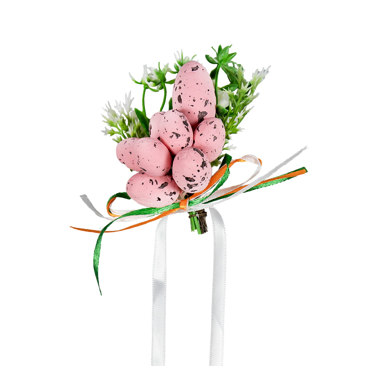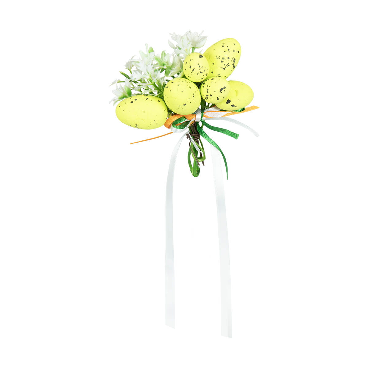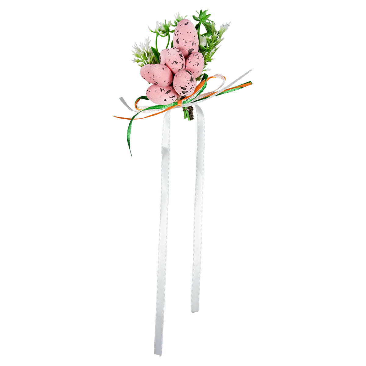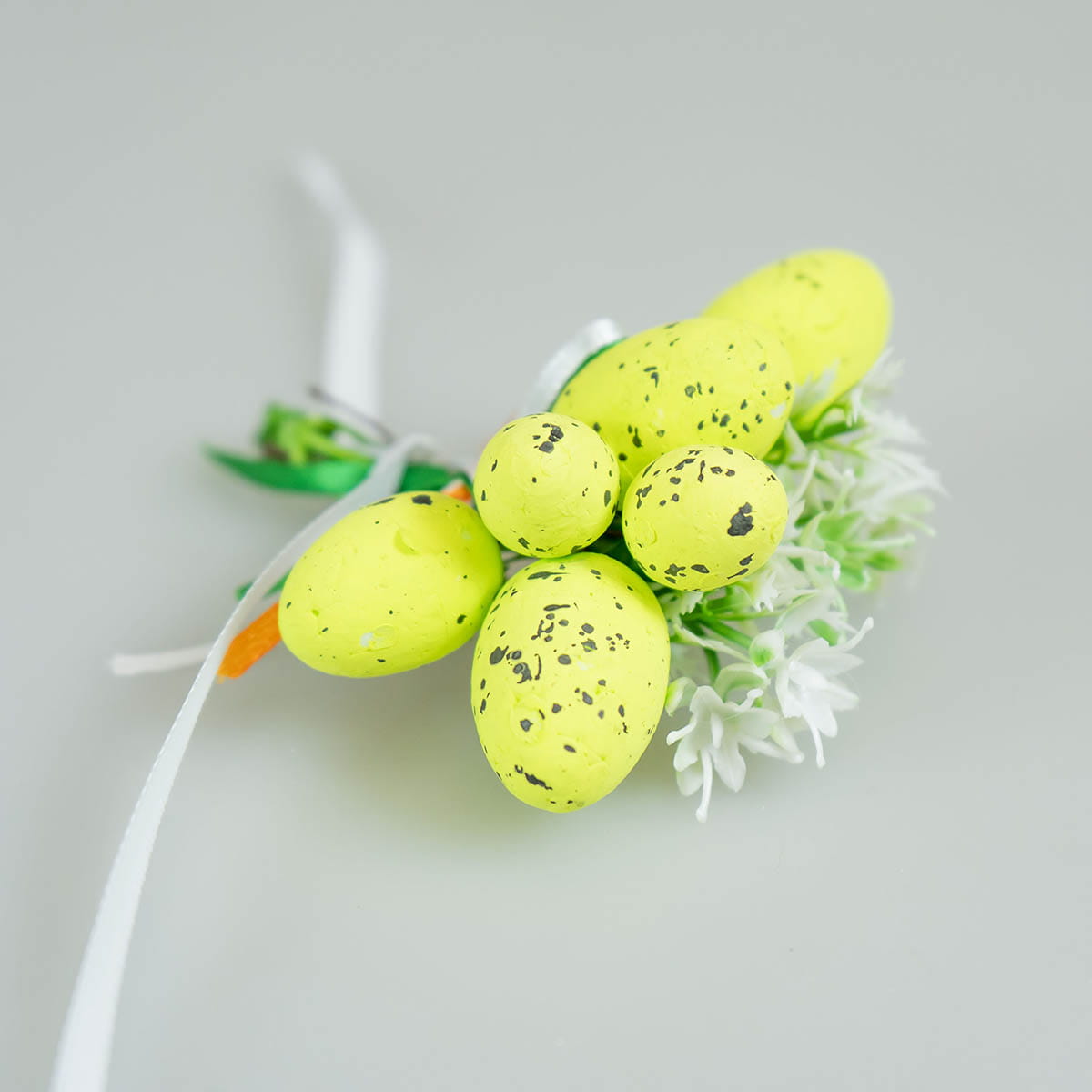 Dekoracja o długości 10 cm jest lekka i łatwa w montażu na wstążce, co sprawia, że można ją szybko i wygodnie przymocować do koszyczka. Produkt idealnie sprawdzi się również jako ozdoba stołu, wiosennego stroika czy innych wielkanocnych kompozycji.