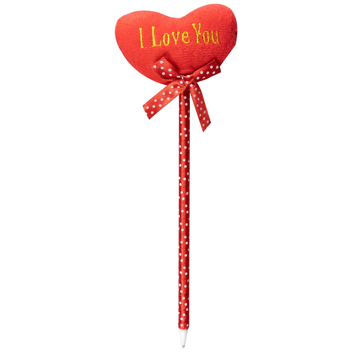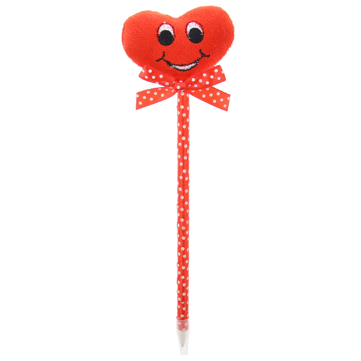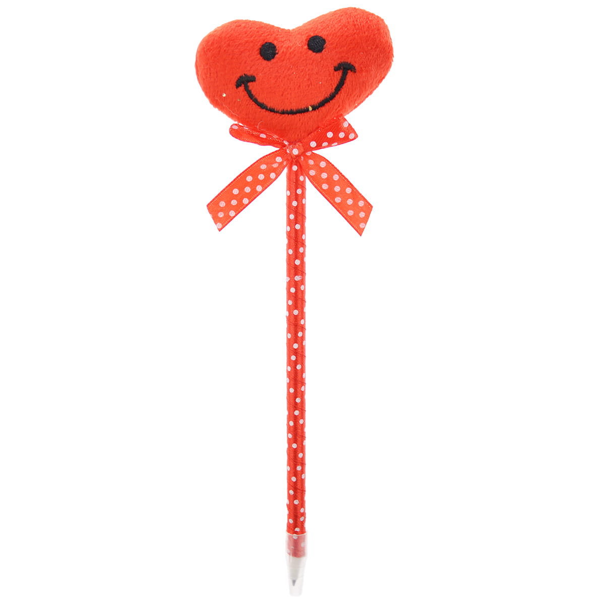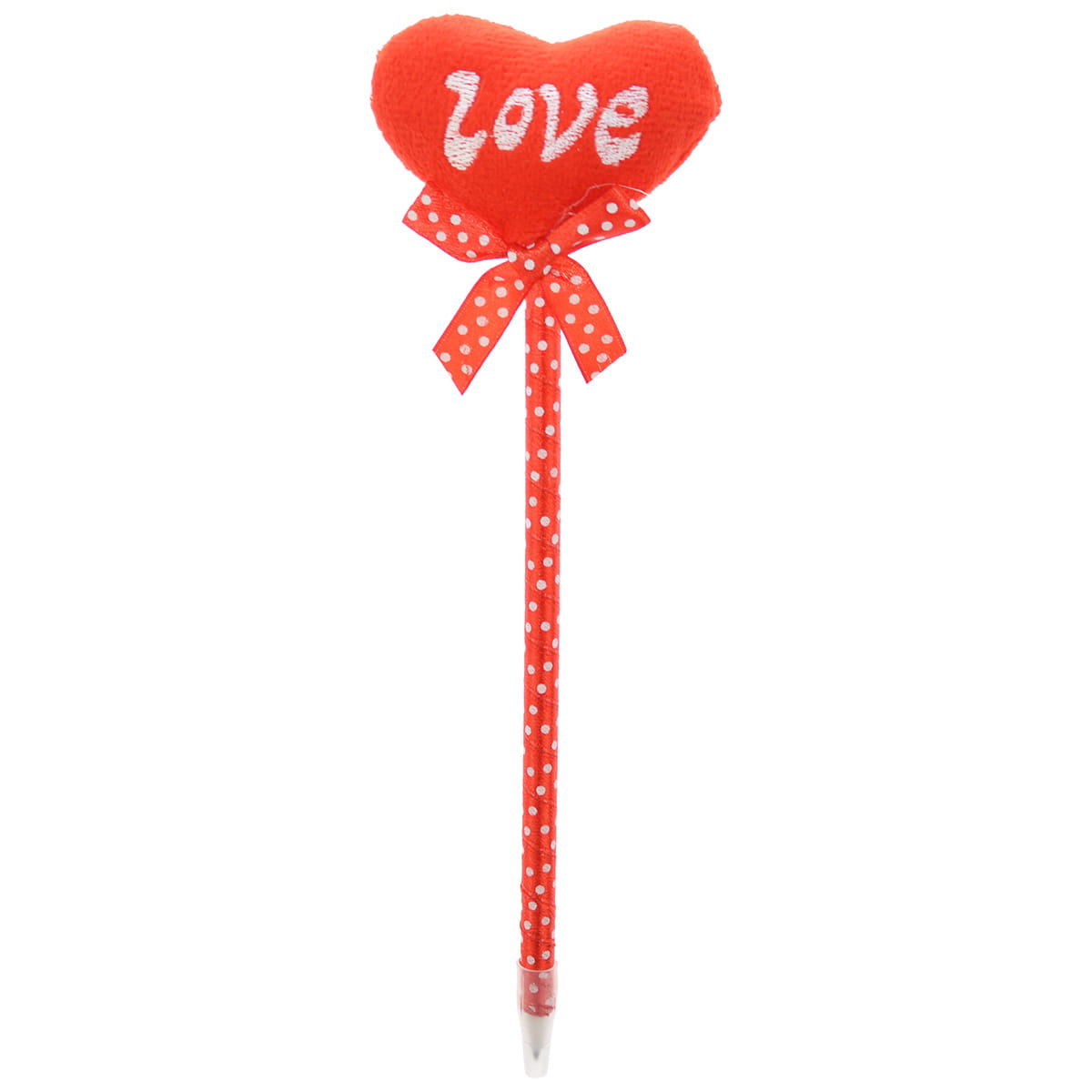 Długopis ozdobiony wstążeczką i miękkim serduszkiem z różnymi aplikacjami. Wymiar serduszka 6x5,5 cm. Długość całkowita ok 22 cm.