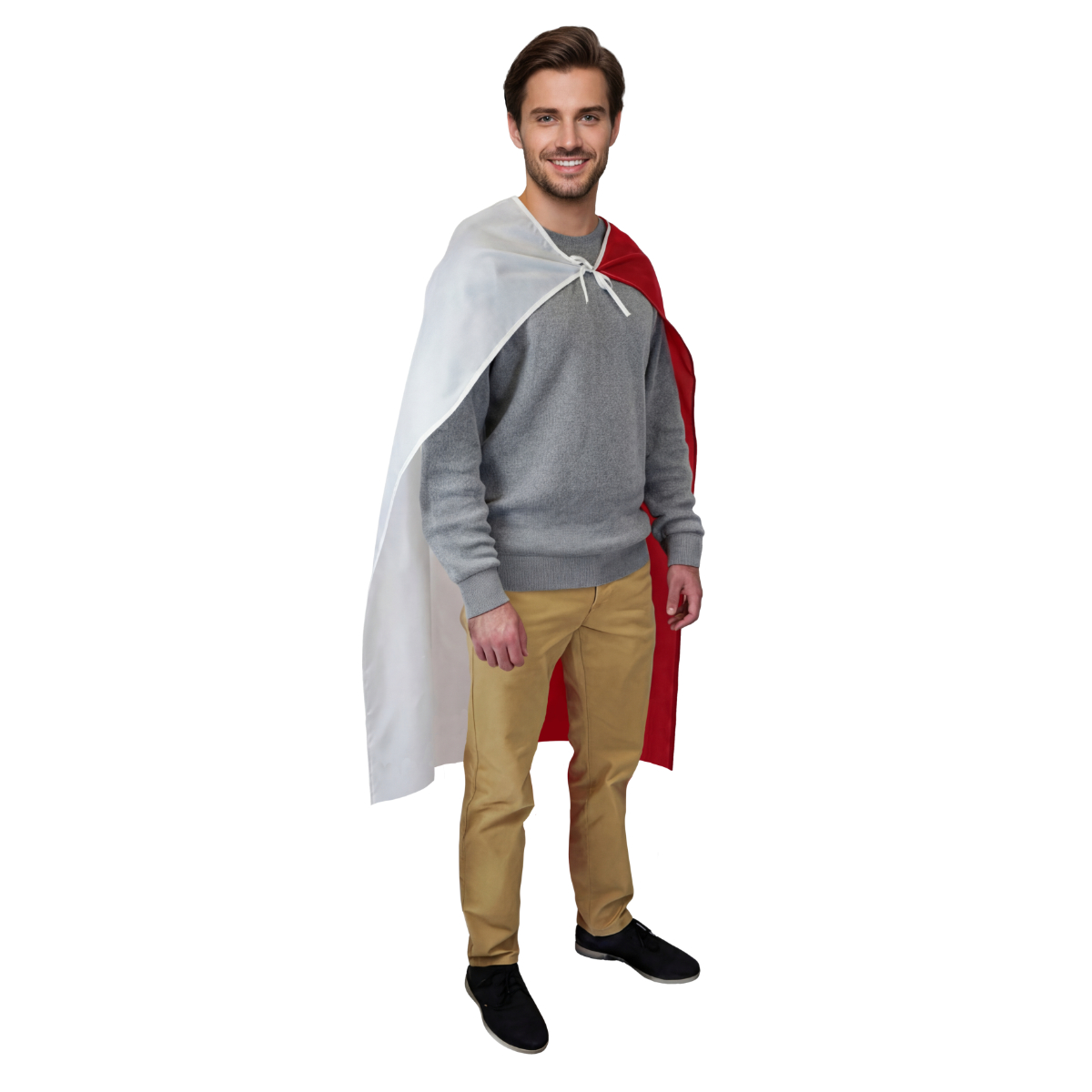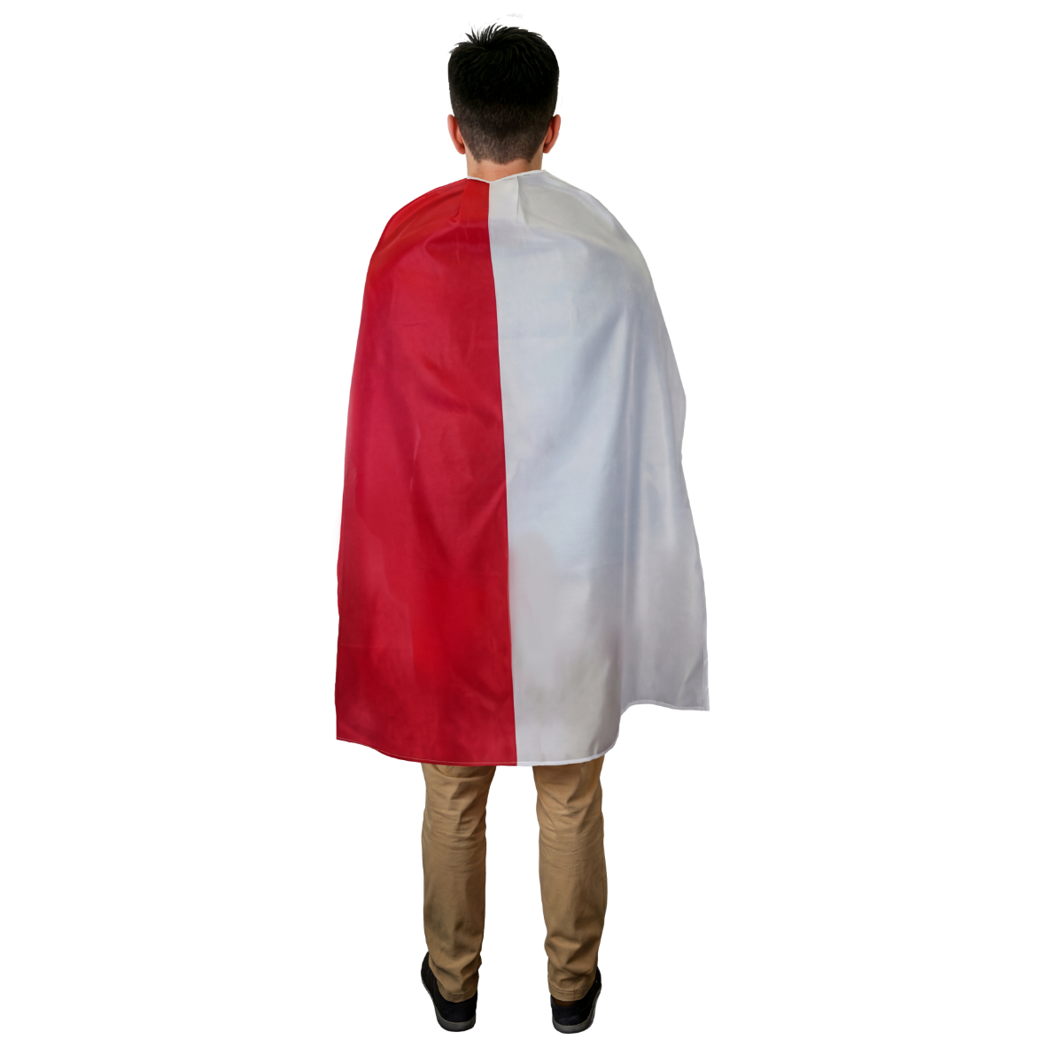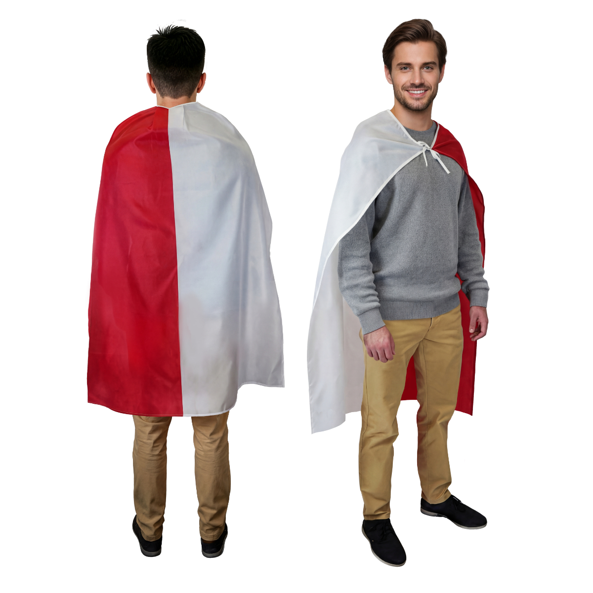 Flaga-peleryna w biało-czerwonych barwach łączy tradycję z nowoczesną formą wyrazu patriotyzmu.
