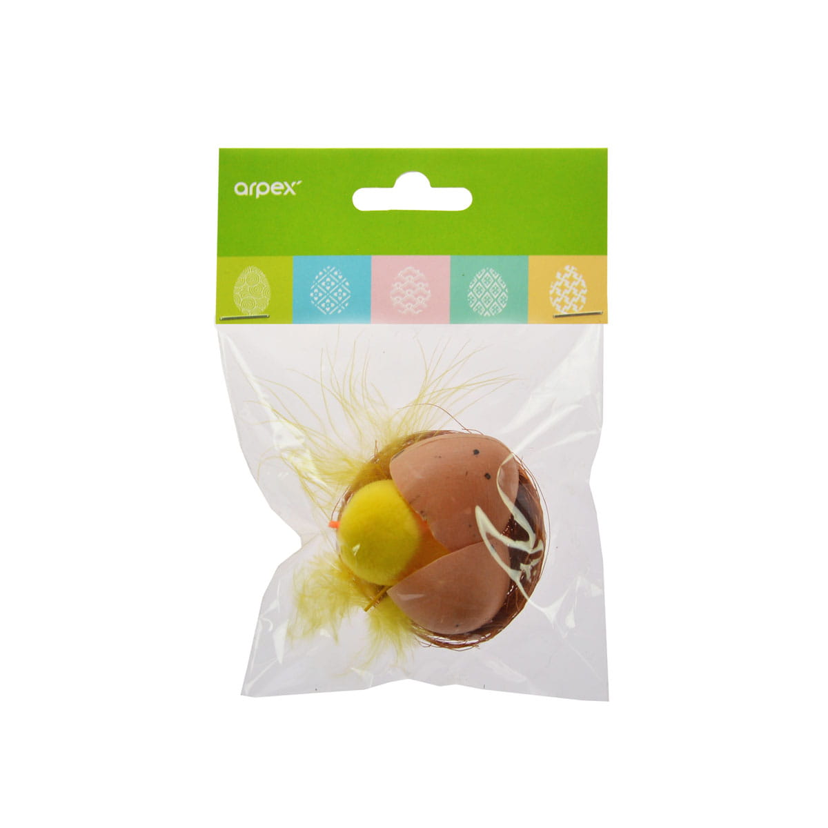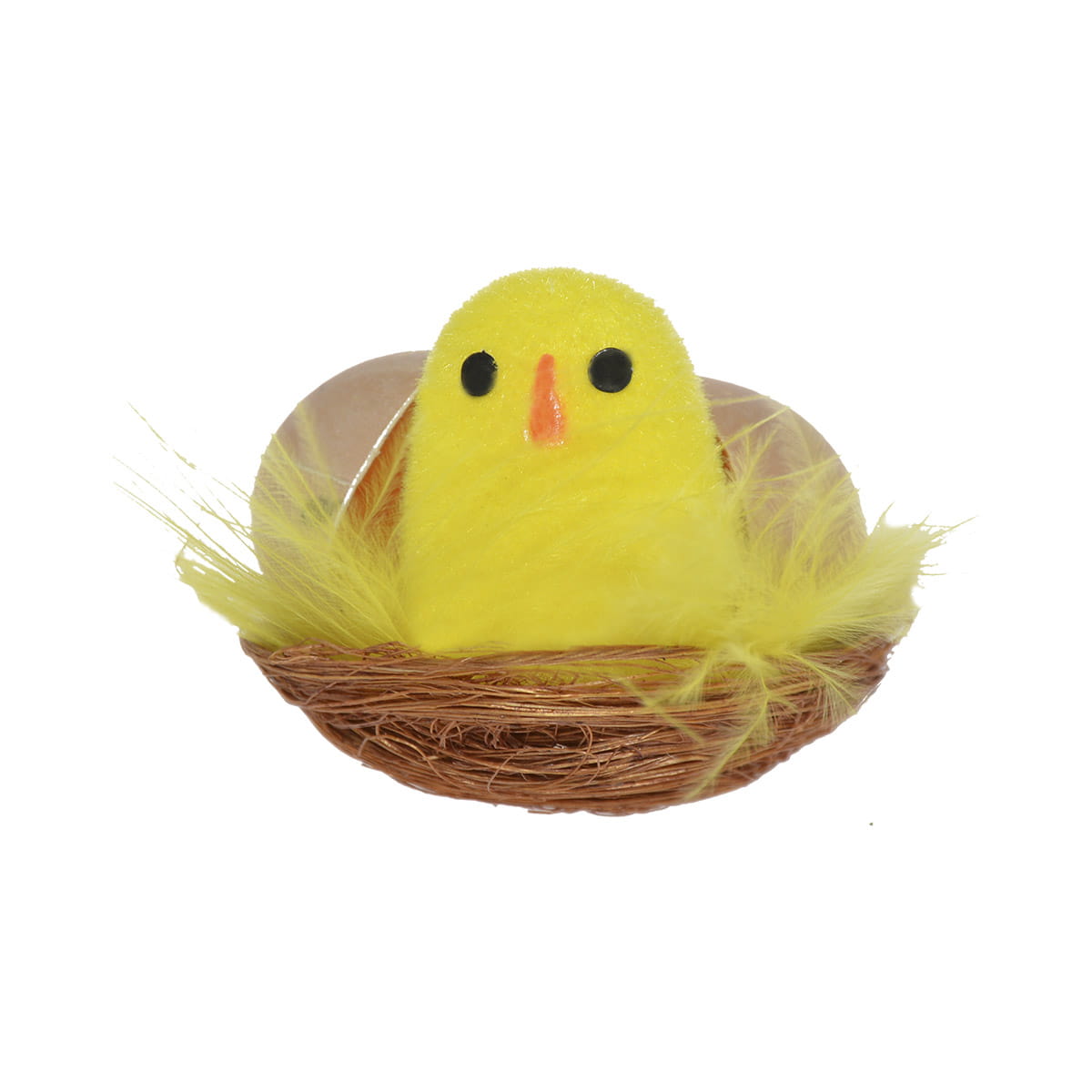 Kurczaczek w gniazdku idealnie nadający się jako dekoracja wielkanocna. Wysokość: 5 cm.