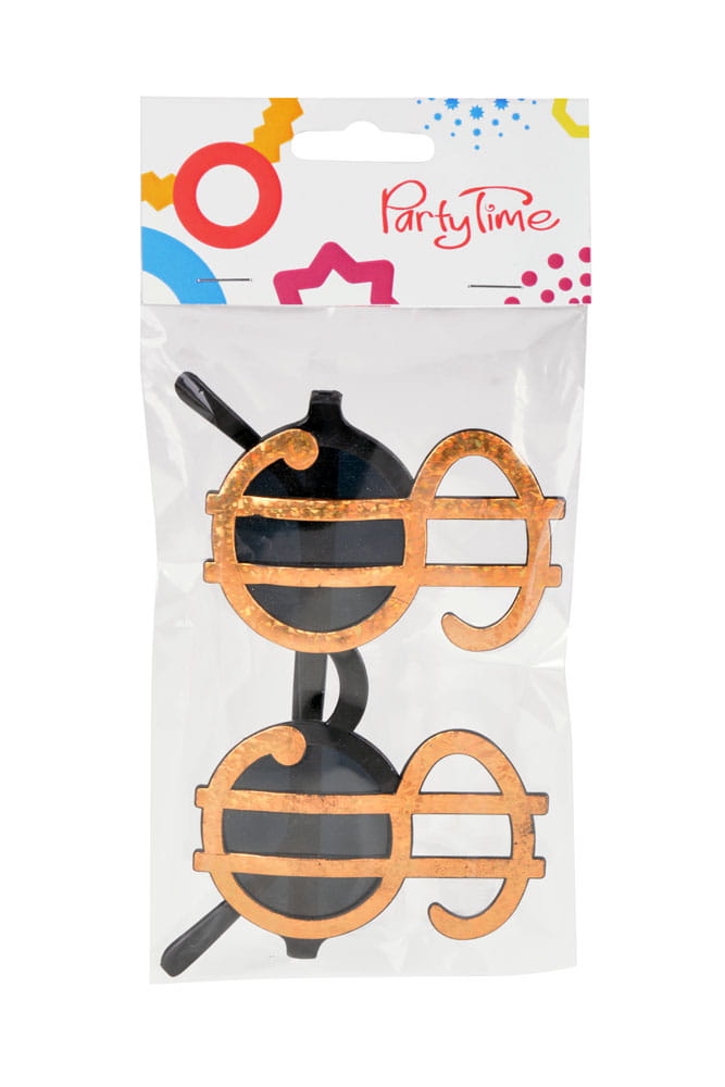 Plastikowe okulary w kształcie dolara amerykańskiego.
