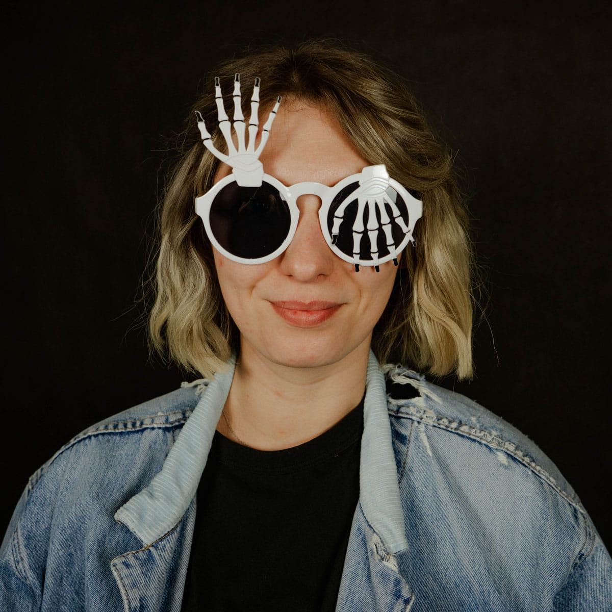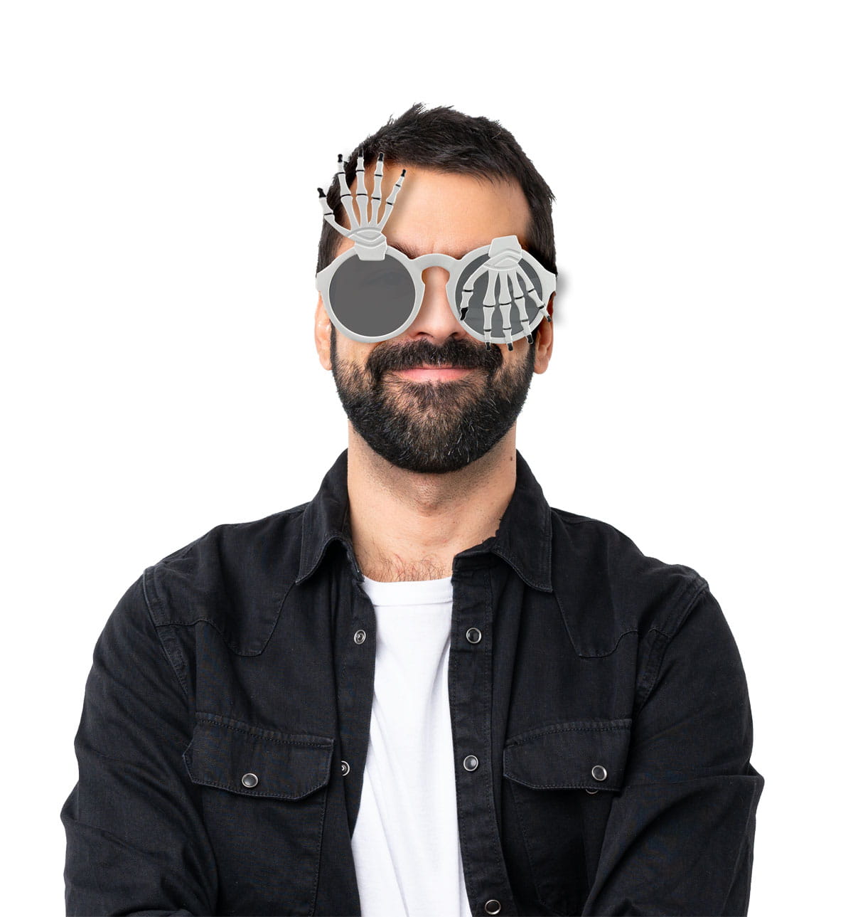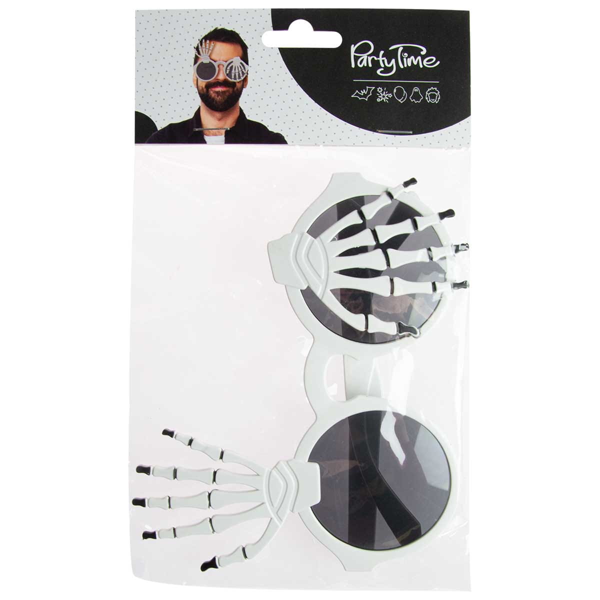 Halloweenowy dodatek do stroju - okulary z łapami kościotrupa. Rozmiar uniwersalny, dla osoby dorosłej.