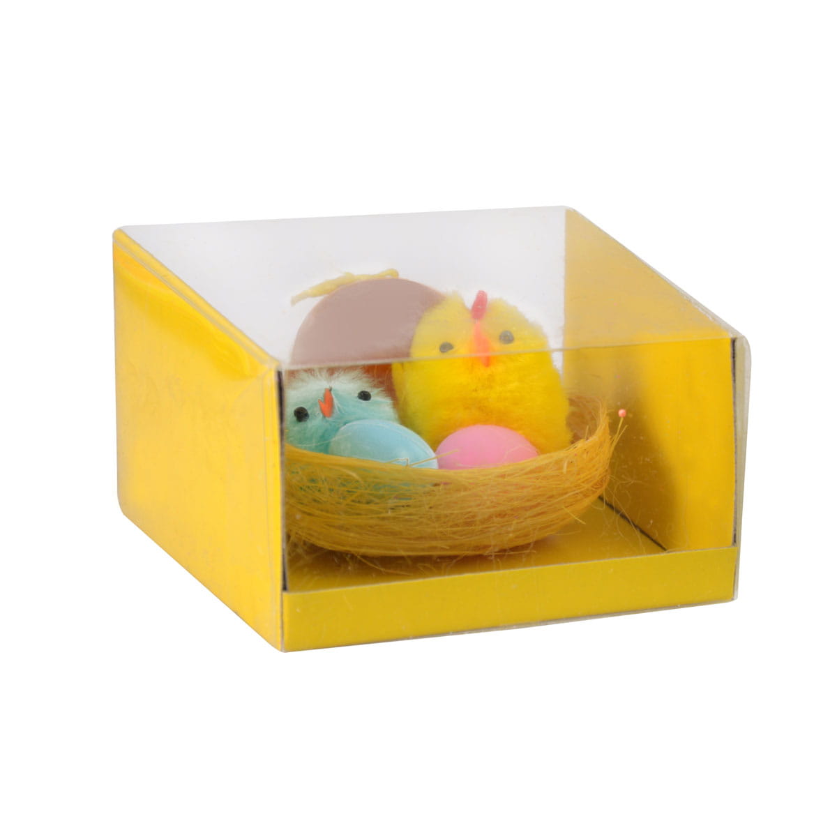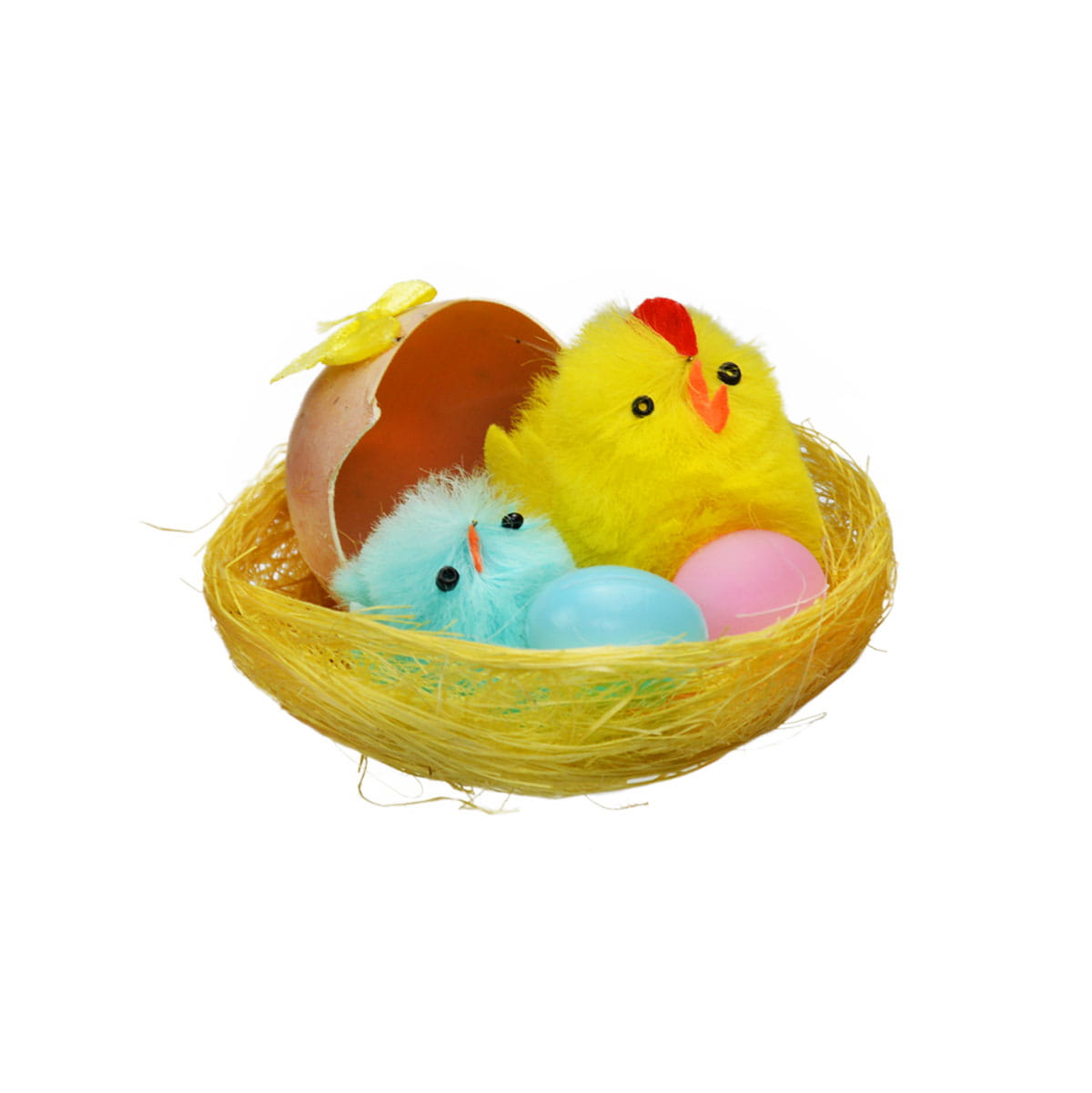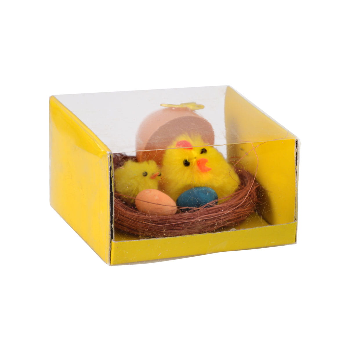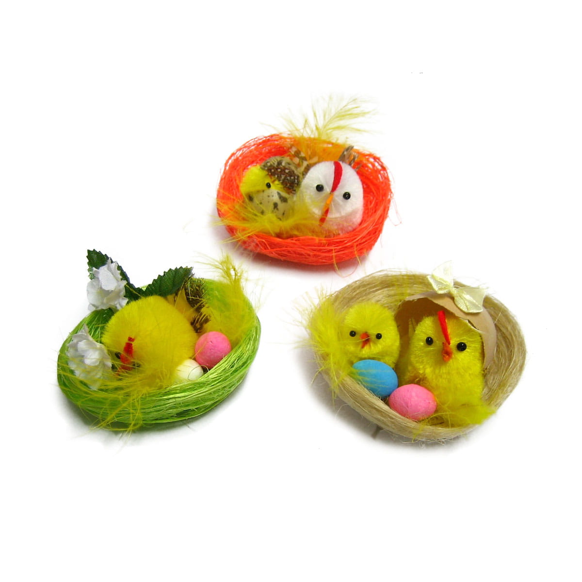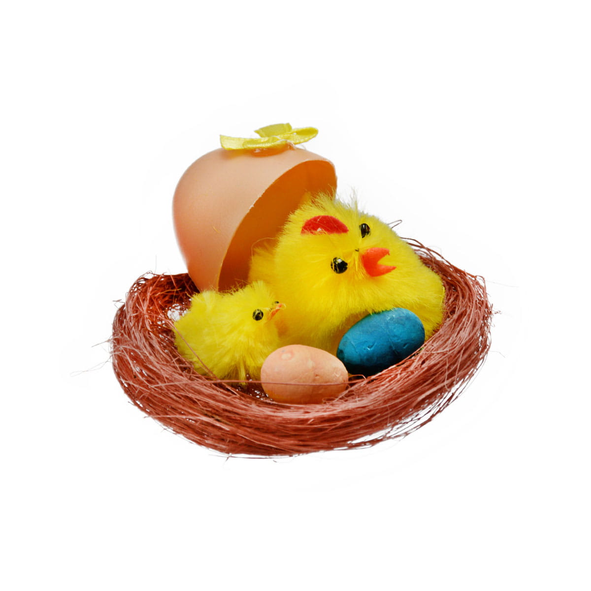 Stroik wielkanocny "Rodzinka w koszyku". Pakowany po jednej sztuce. Wielkość ok. 6,5 cm. Przed zakupem prosimy o potwierdzenie dostępności konkretnego koloru.