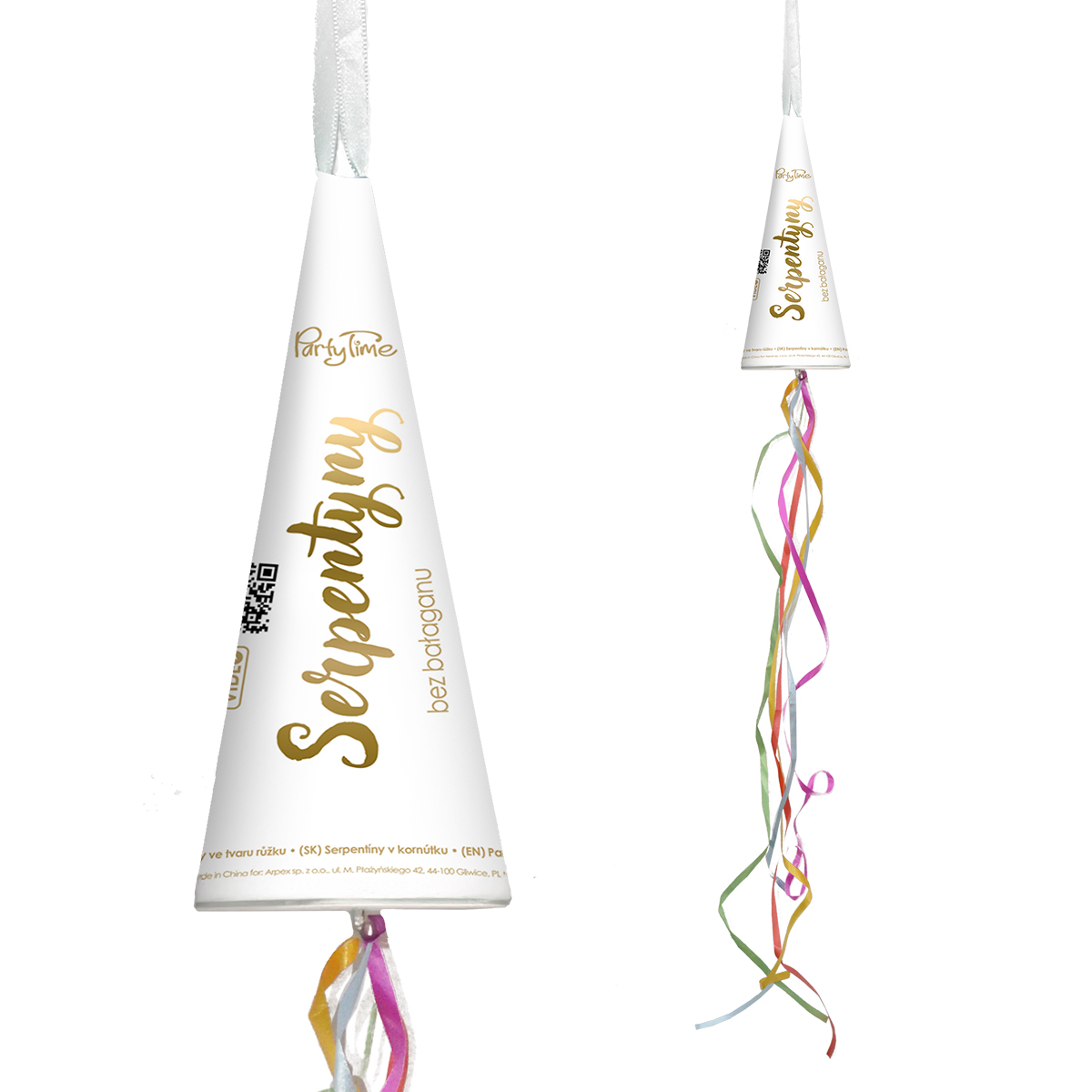 Serpentyny bez bałaganu to innowacyjna dekoracja imprezowa, która pozwala cieszyć się efektem kolorowego wystrzału bez problematycznego sprzątania. Kolorowe serpentyny o długości 600 cm są połączone w jednym rożku, dzięki czemu po zakończeniu zabawy można je szybko i wygodnie zwinąć. To rozwiązanie szczególnie doceniane w miejscach, gdzie czystość ma duże znaczenie – przy kościołach, na salach weselnych czy w lokalach eventowych. Produkt certyfikowany FSC® – papier pochodzi z odpowiedzialnie zarządzanych źródeł.