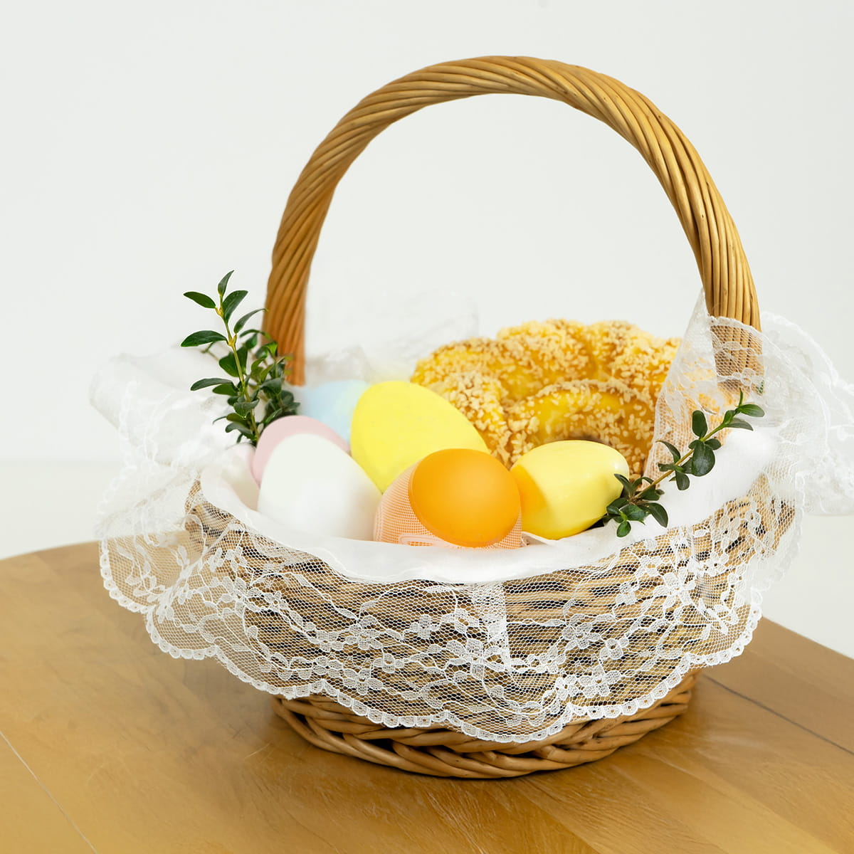 Serwetka do koszyczka to praktyczny i estetyczny dodatek przeznaczony do wyłożenia wnętrza koszyczka wielkanocnego. Chroni zawartość koszyczka i jednocześnie nadaje całości schludny, świąteczny wygląd. Prosty, jasny design sprawia, że serwetka doskonale komponuje się z różnymi rodzajami koszyków oraz wielkanocnymi dekoracjami. Okrągły kształt i uniwersalna średnica 40-45 cm pozwalają na łatwe dopasowanie do koszyczków o różnych rozmiarach.