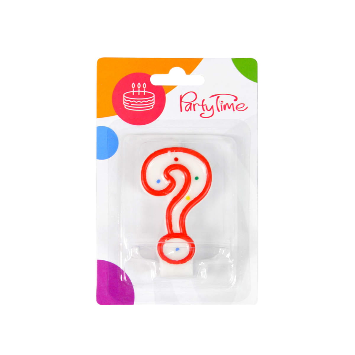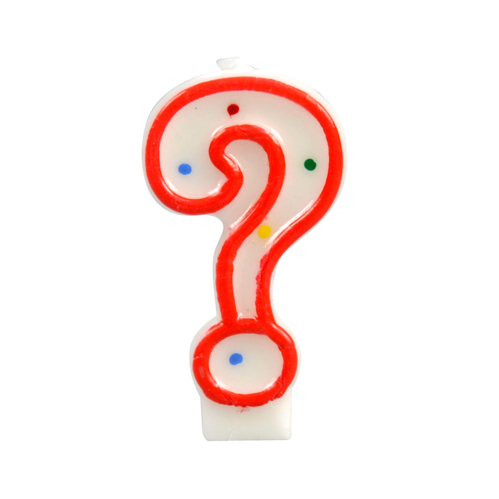 Oryginalna świeczka urodzinowa w kształcie znaku zapytania to idealny wybór na tort, gdy chcesz zaskoczyć jubilata lub zachować niespodziankę dotyczącą wieku! Wykonana z białego wosku, ozdobiona intensywnie czerwonym konturem i uroczo udekorowana kolorowymi kropkami w odcieniach niebieskiego, czerwonego, zielonego i żółtego. Dzięki wysokości 7,5 cm, świeczka doskonale prezentuje się na torcie i może być wykorzystana zarówno samodzielnie, jak i jako uzupełnienie cyfr z tej samej serii, np. 9 + znak zapytania.