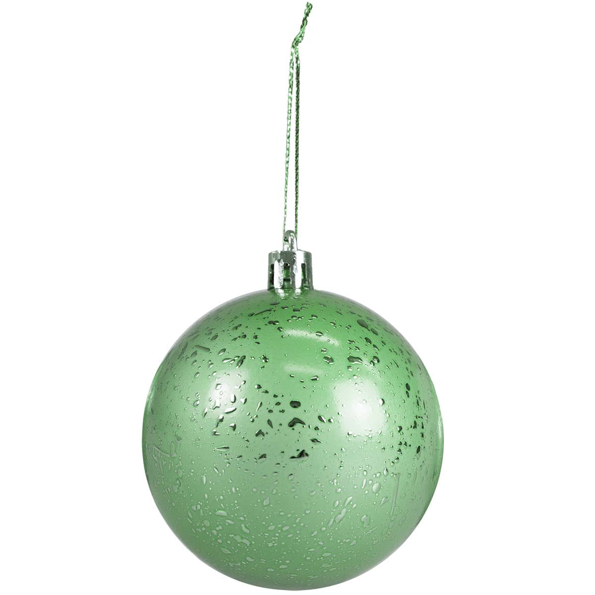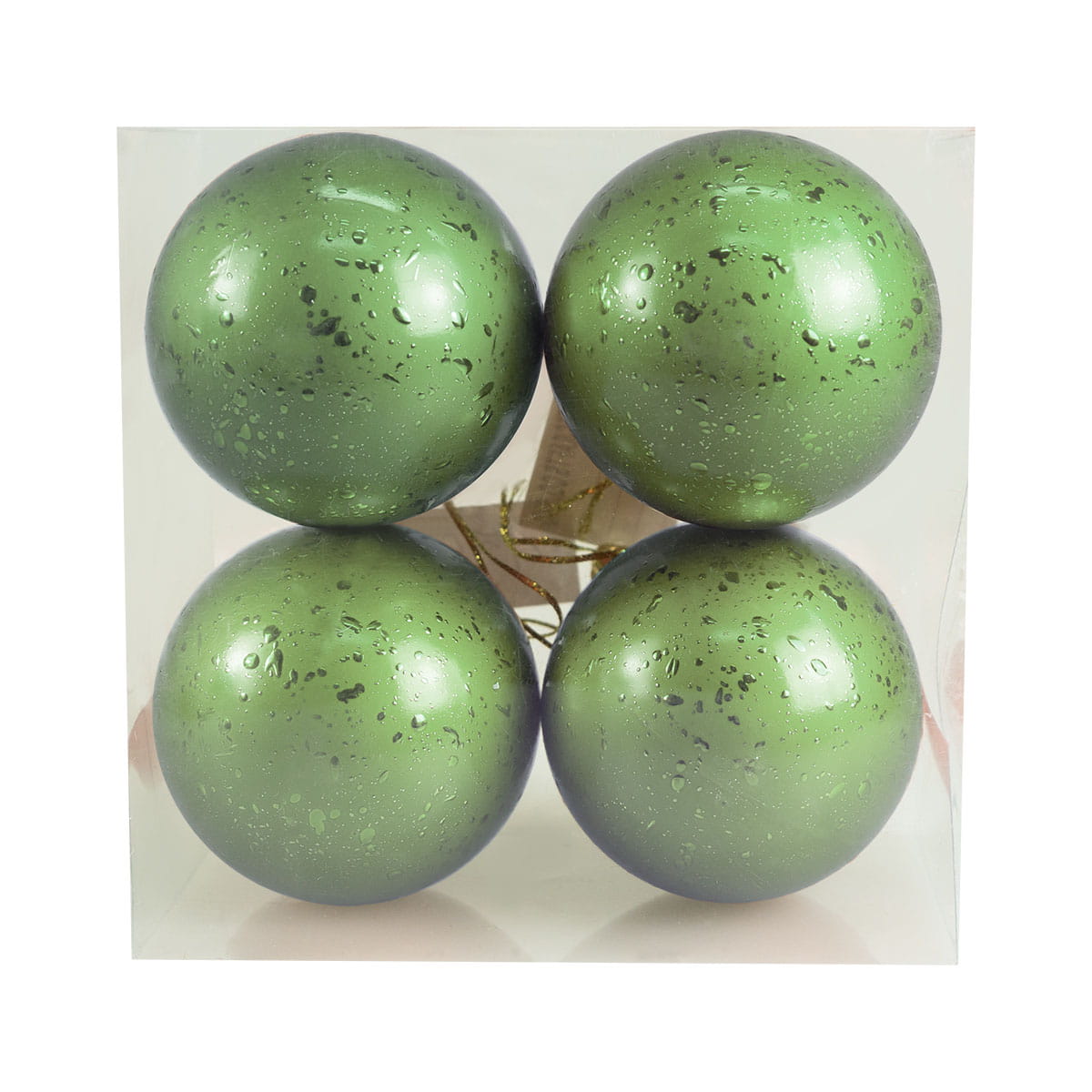 Komplet 4 bombek choinkowych w odcieniu szałwiowej zieleni, ozdobionych delikatnym efektem rosy. Delikatny połysk i subtelne zdobienie nadają bombkom nowoczesnego charakteru, idealnie komponującego się zarówno z klasycznymi, jak i minimalistycznymi dekoracjami świątecznymi. Dzięki średnicy 7 cm świetnie prezentują się na choince, stroikach oraz w dekoracjach stołowych.
